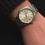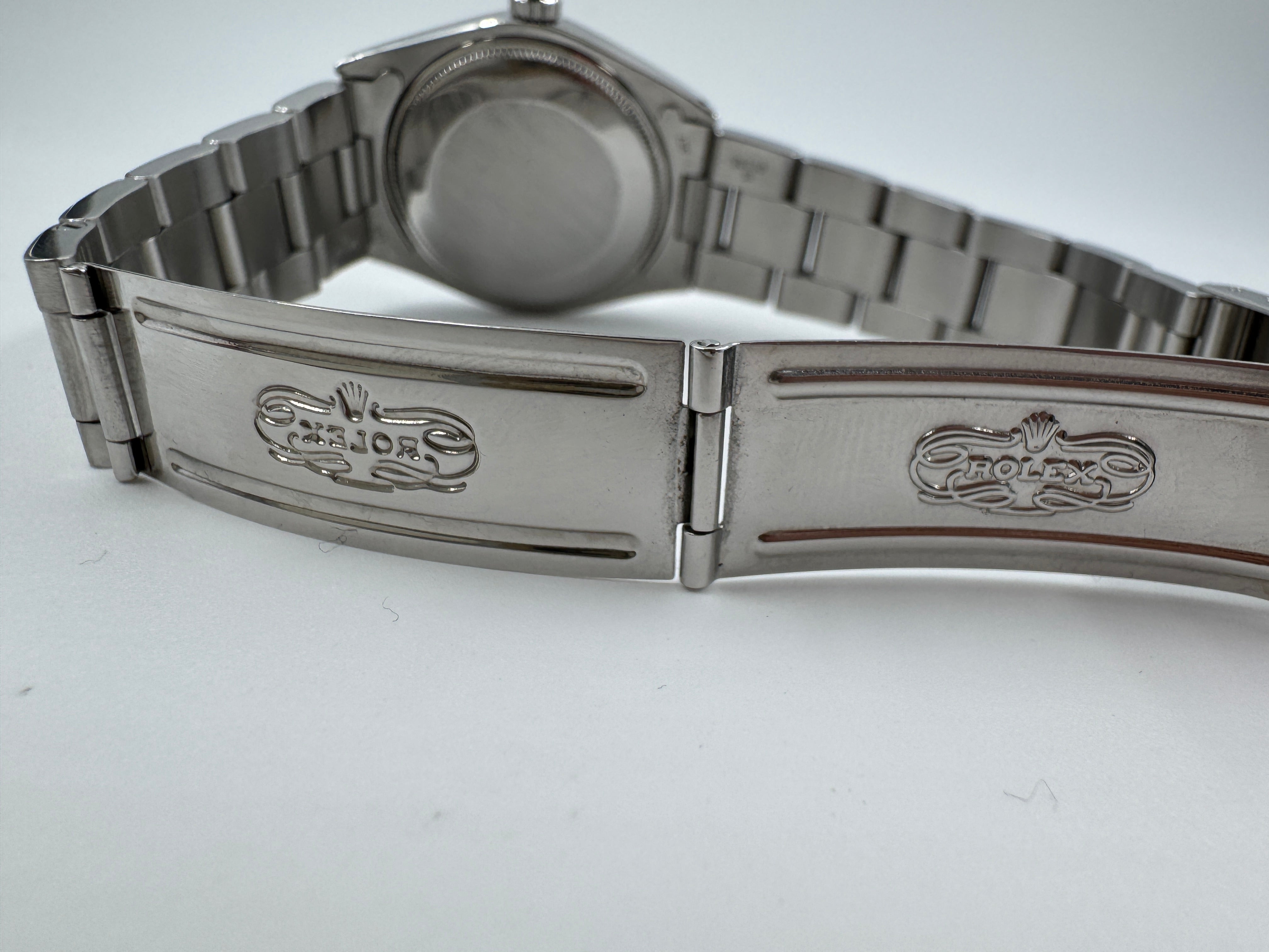 Ref. 5500, otomatik “Precision” mekanizması, gümüş sunburst kadranı ve Oyster bileziğiyle gerçek bir vintage Rolex kimliği taşır.