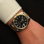 Bu örnek; Oystersteel & 18K Yellow Gold kasa, fluted (yivli) bezel ve Jubilee bilezik kombinasyonuyla Datejust tarihinin en karakteristik konfigürasyonlarından biridir.