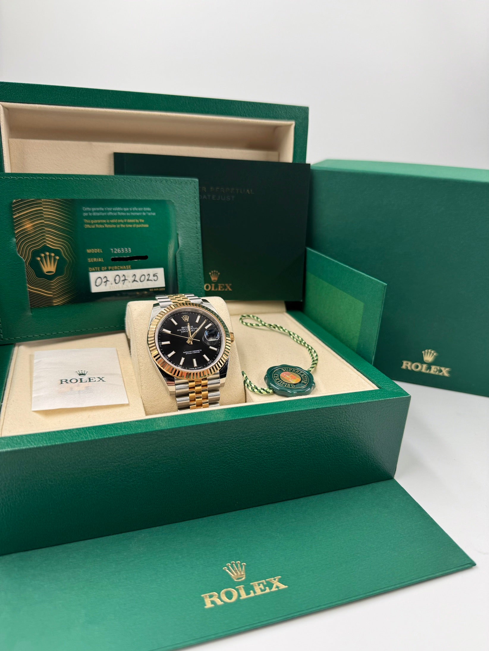 Rolex Datejust 41 – Black Dial – Fluted Bezel – Jubilee – Full Set – 2025