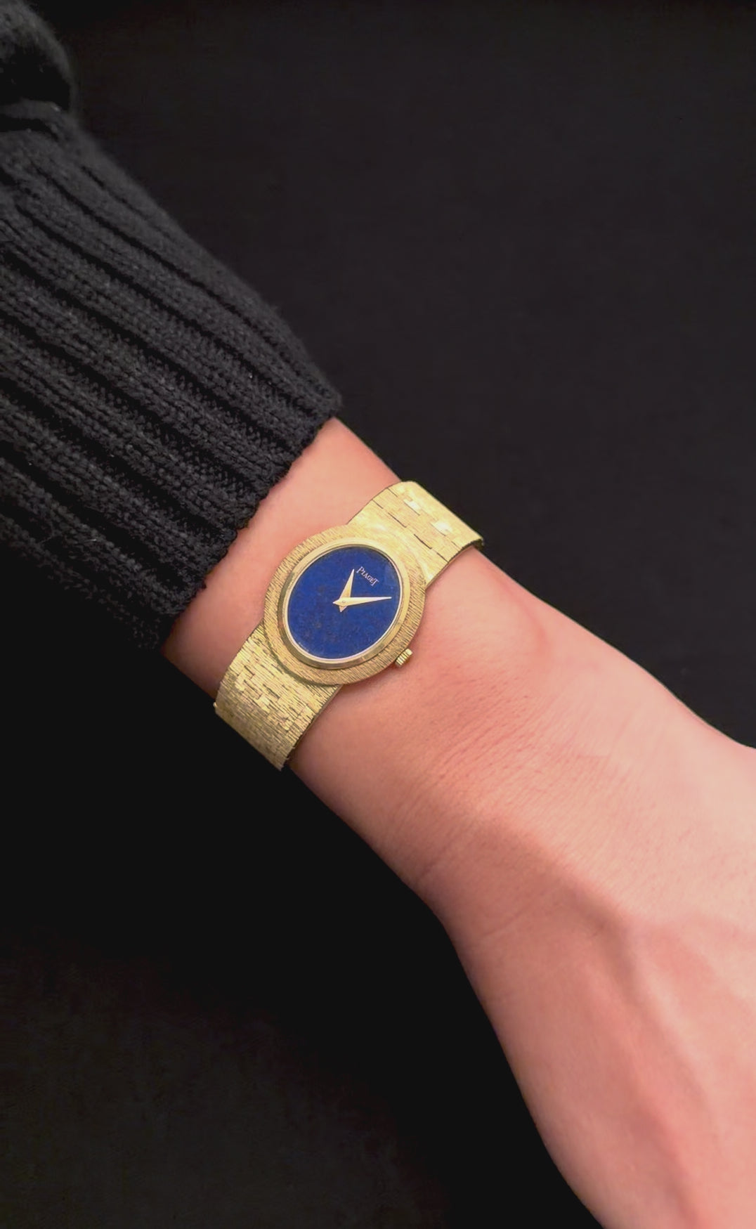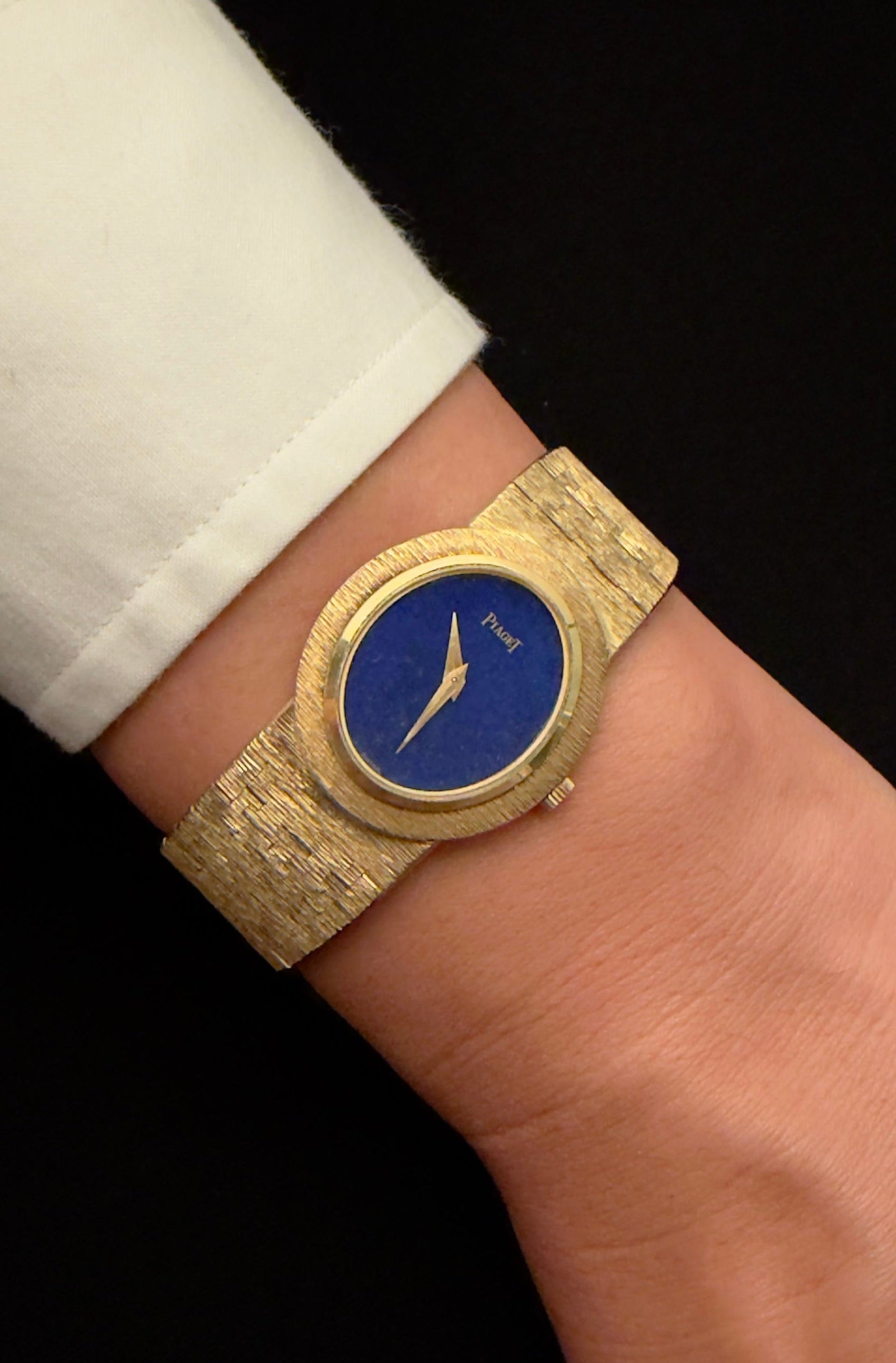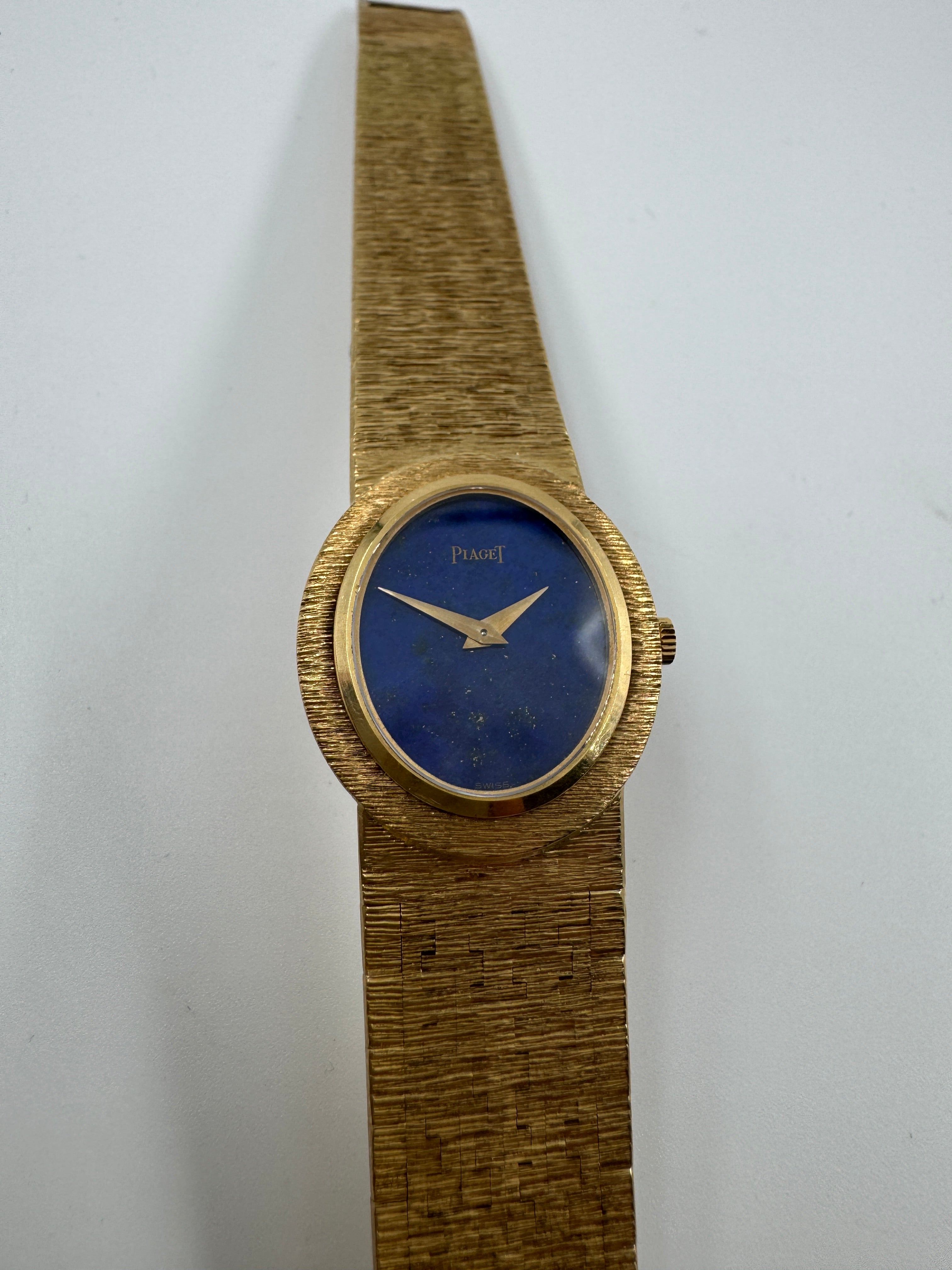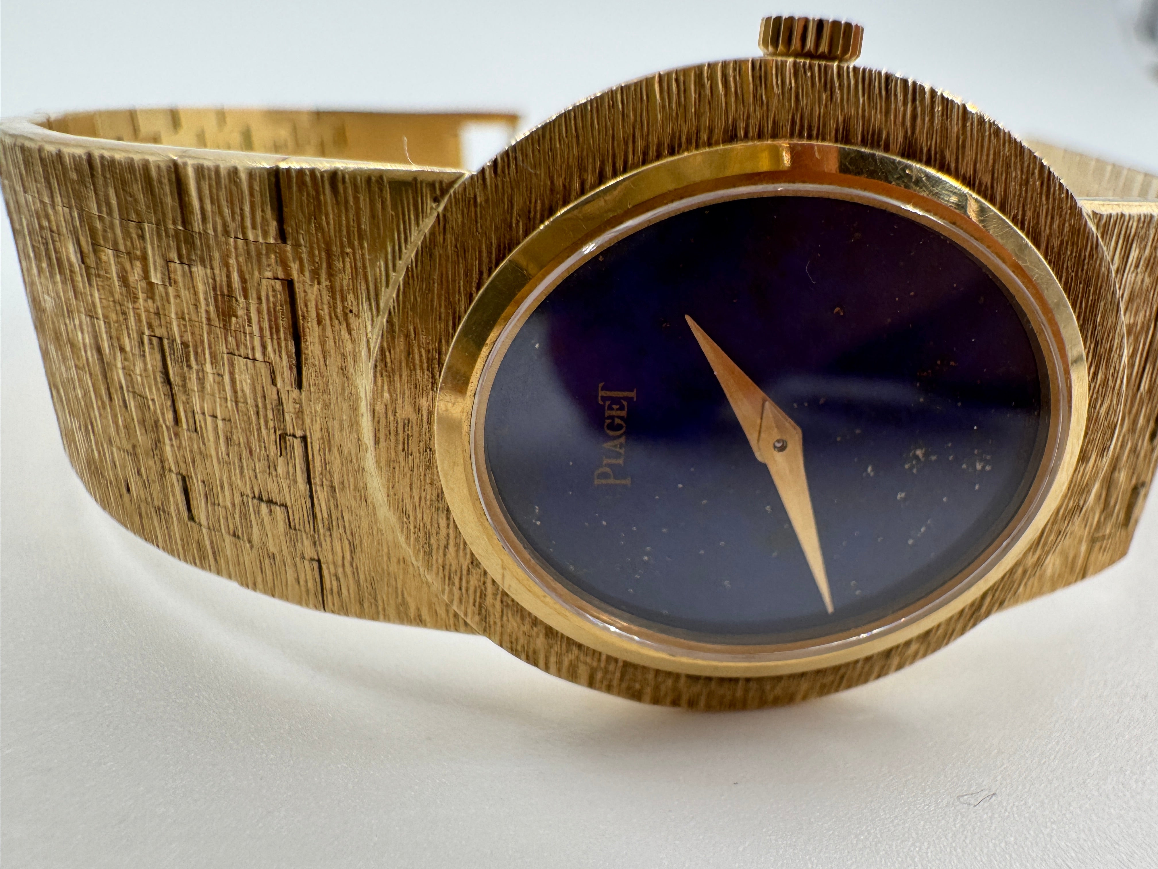 Piaget Vintage Dress Watch – 18K Yellow Gold Integrated Bracelet – Lapis Lazuli Dial – 1970s